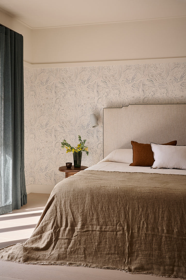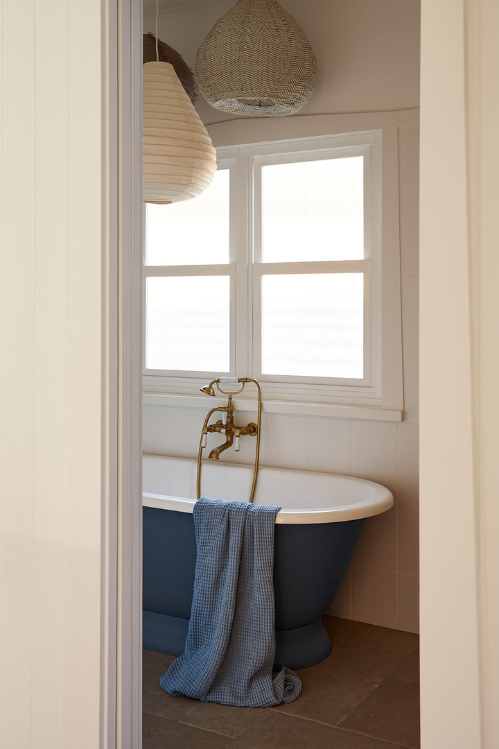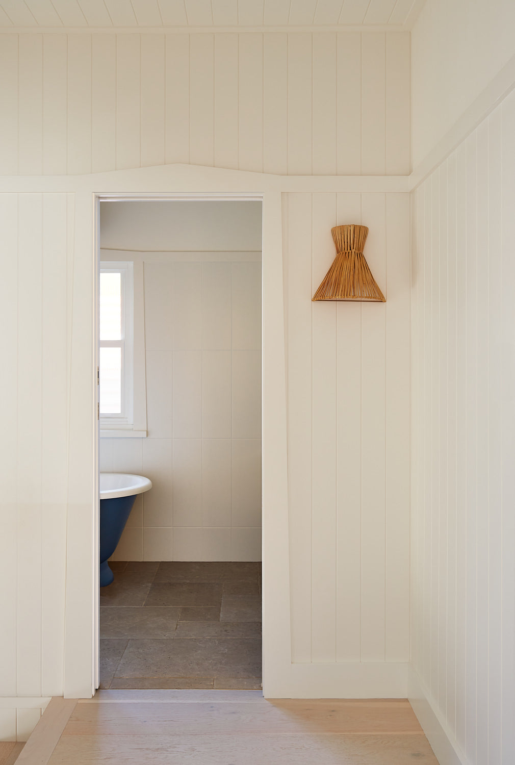 The result is best described as contemporary coastal with a nod to heritage, including subtle tributes to the original architecture, like the reinterpretation of the home’s triangular architraves through balcony fretwork.