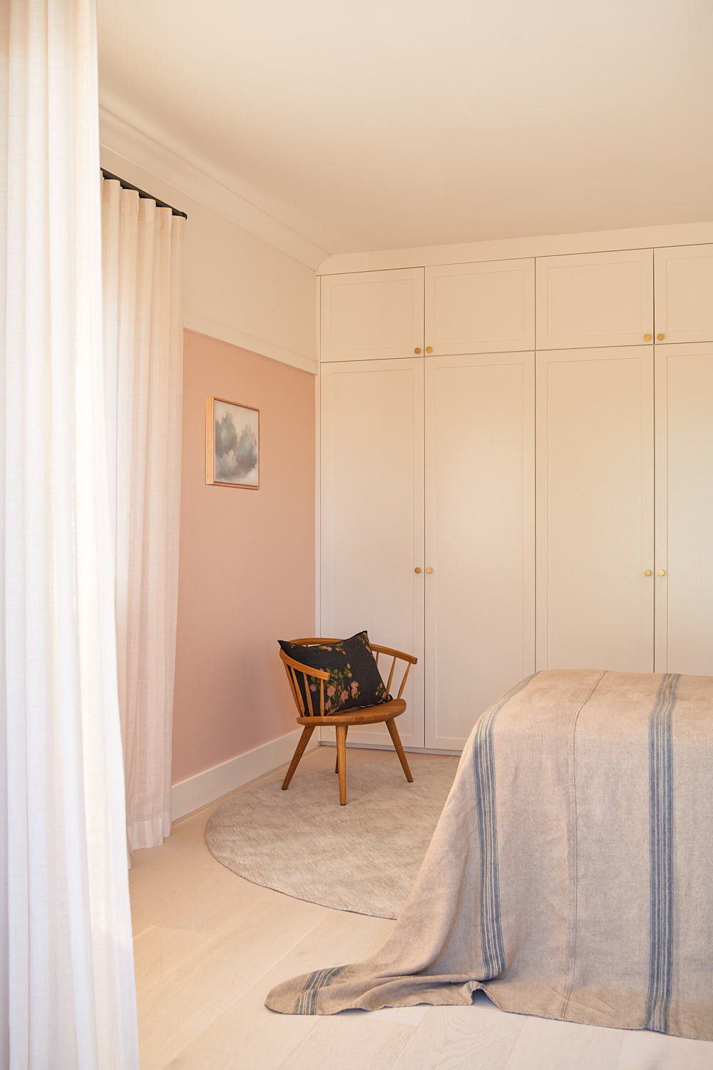 For Claire, one standout space is the ground floor bathroom, where the palette becomes its most expressive: peach-toned walls paired with the Mill Basin in Blush Pink. The result is playful, uplifting, and designed to make you smile the moment you step inside.