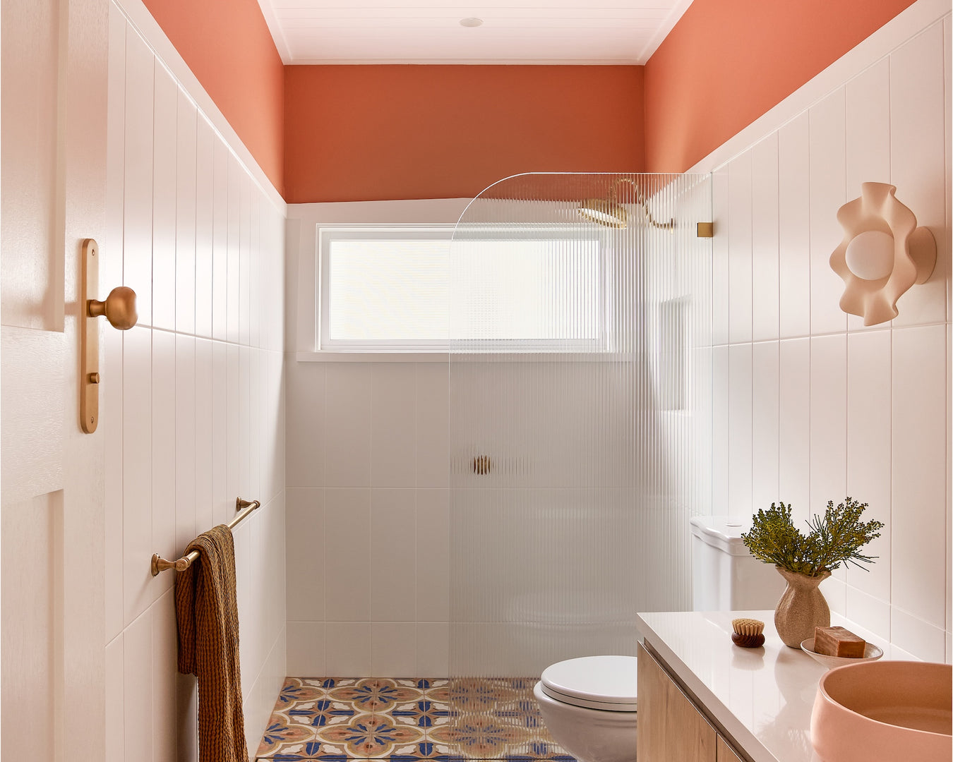 Claire shares that colour is central to how they design bathrooms and Nood Co. offered a way to introduce it in a bold but refined way:
