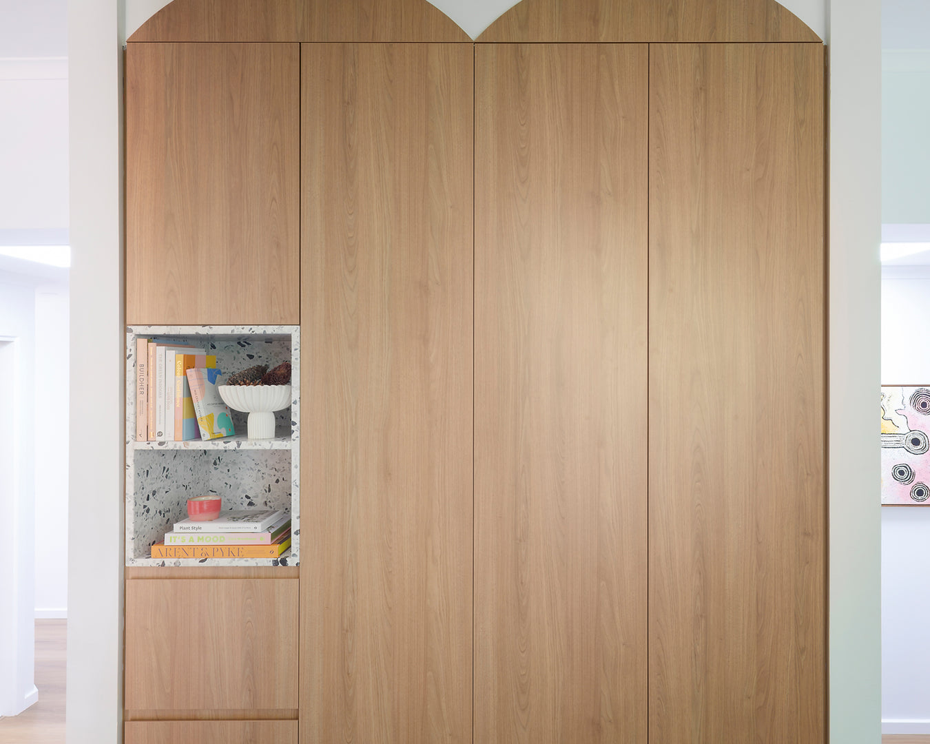 The clients’ brief was clear but impactful: no white joinery, and a bold embrace of colour. At a time when neutral palettes dominated interior trends, this home challenged convention entirely. The result is a vibrant, personal space characterised by layered materials, careful detailing, and a joyful, expressive character.