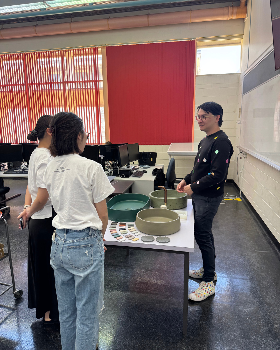 Kelwin walked students through the journey of transforming an idea into a tangible object. His presentation set the tone for what the students would later experience firsthand at the factory, demonstrating that great design is as much about intention and storytelling as it is about form and function.