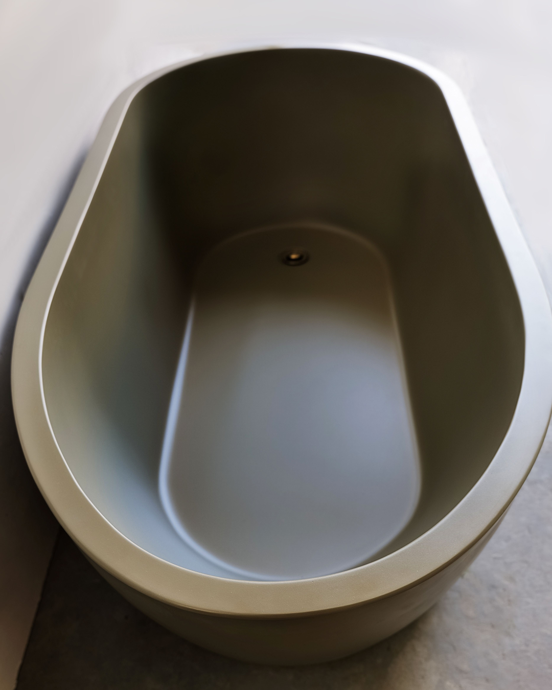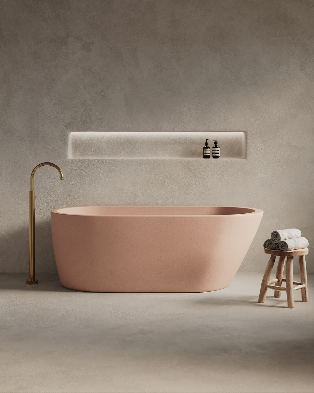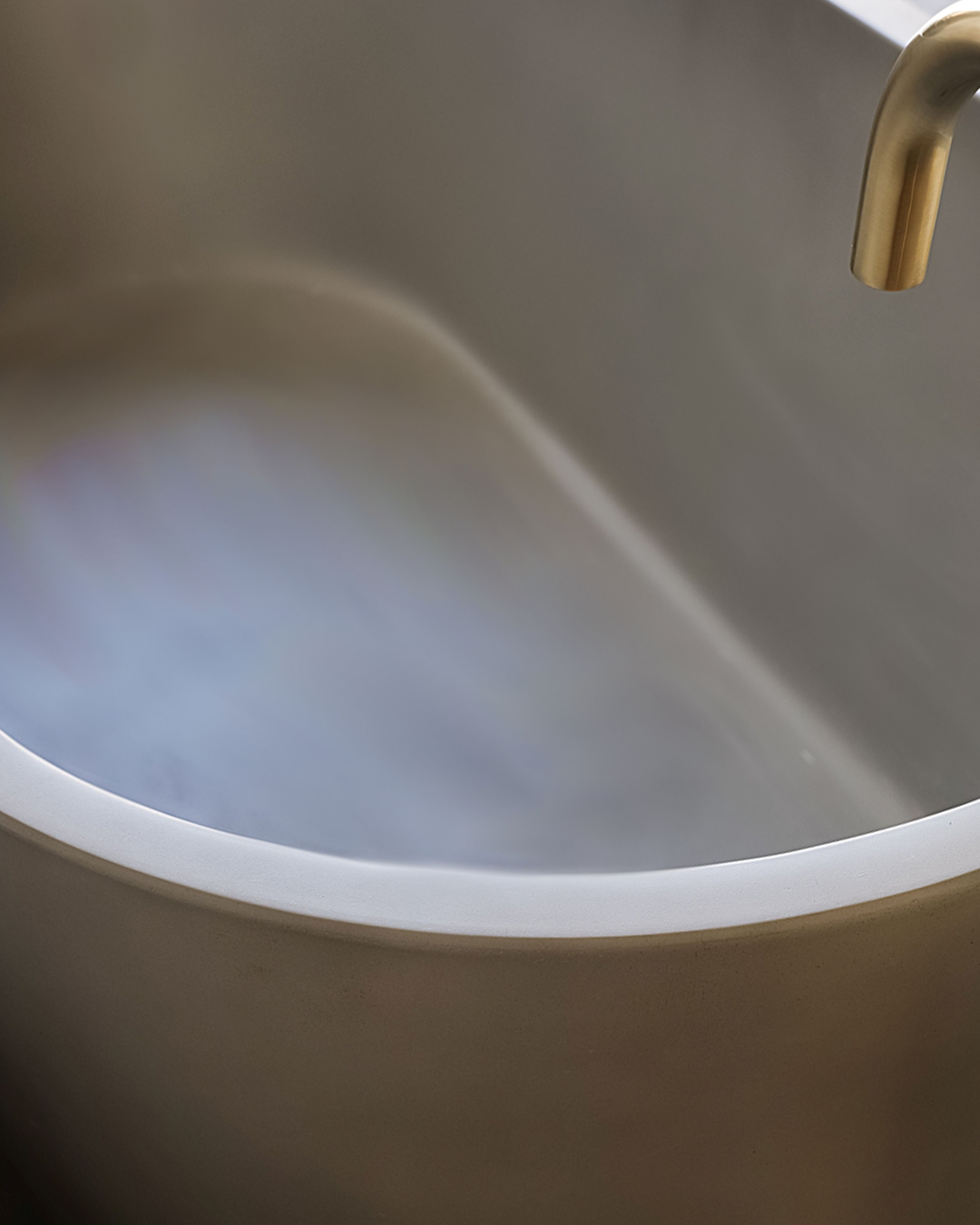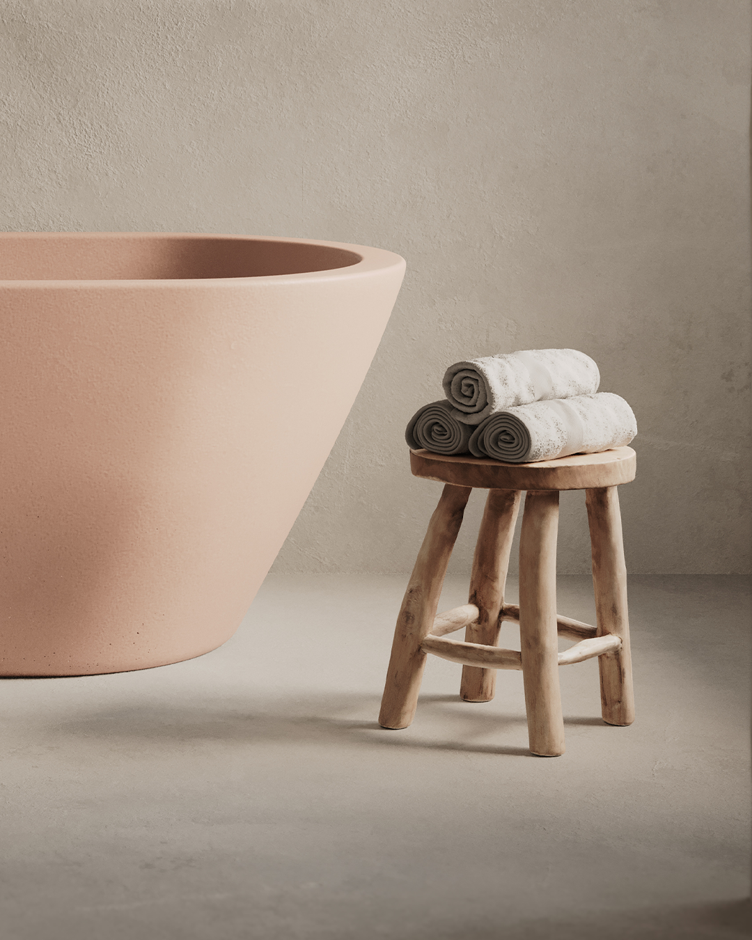 Kindly Note: The images provided are for illustrative purposes and may not accurately capture the product's true colour. For a precise colour match, we recommend referencing our sample kits or viewing our products in person at an authorised reseller. Our concrete mix yields a predominantly smooth finish. While pinholes can occasionally appear, the overall appearance and patina of your bath will remain largely uniform.