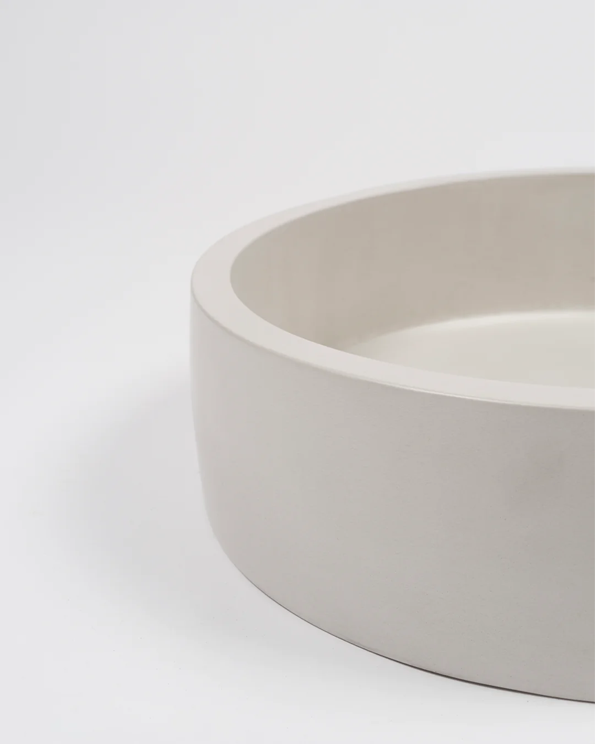 With a sleek, thinner wall, the Hoop Basin adds a refined touch to the bathroom. Detail shot featured in Ivory. Nood Co Concrete colours, feel, and aesthetic can look different in photos and we recommend that you purchase a sample pack prior to making your purchase.