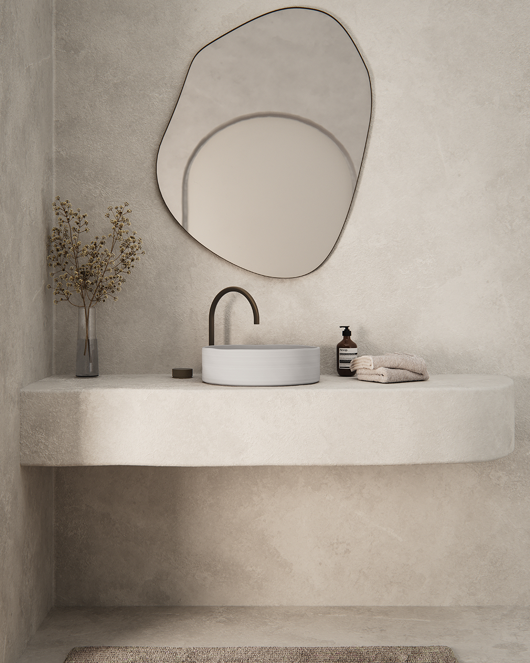 Hand moulded, organic and soft. A comfortable 380mm D, welcome to the perfect imperfect. Available in Surface Mount and Wall Mount.