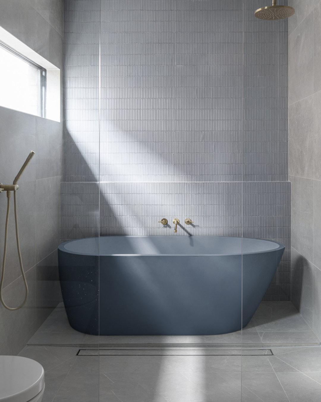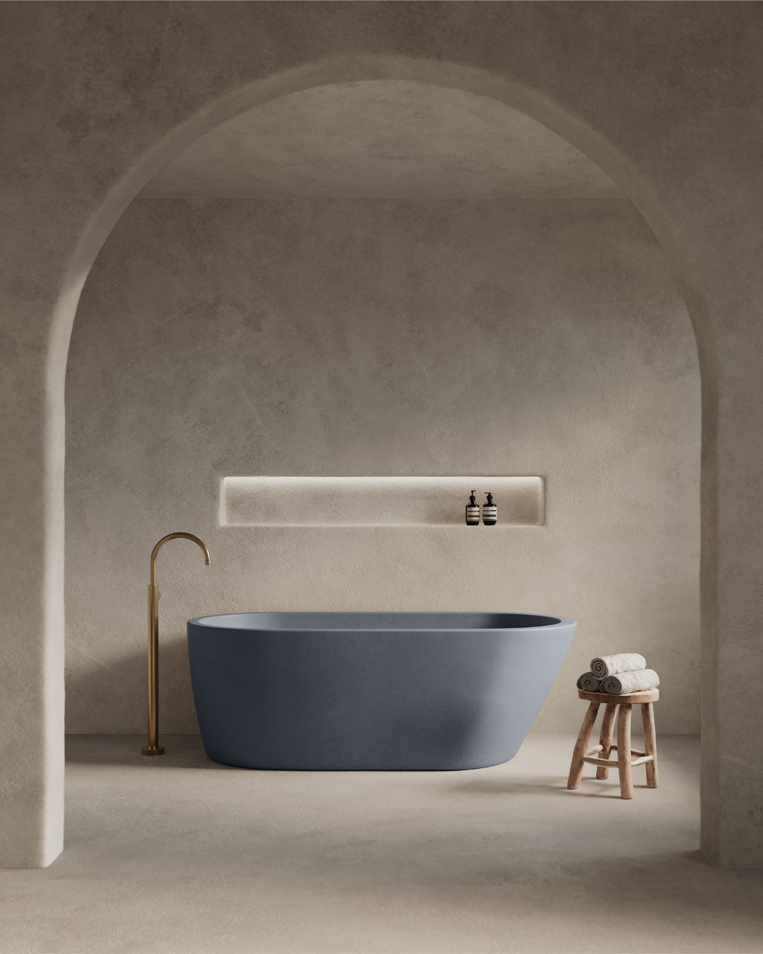 Kindly Note: The images provided are for illustrative purposes and may not accurately capture the product's true colour. For a precise colour match, we recommend referencing our sample kits or viewing our products in person at an authorised reseller. Our concrete mix yields a predominantly smooth finish. While pinholes can occasionally appear, the overall appearance and patina of your bath will remain largely uniform.
