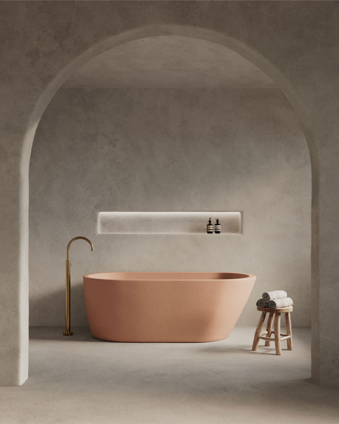 Kindly Note: The images provided are for illustrative purposes and may not accurately capture the product's true colour. For a precise colour match, we recommend referencing our sample kits or viewing our products in person at an authorised reseller. Our concrete mix yields a predominantly smooth finish. While pinholes can occasionally appear, the overall appearance and patina of your bath will remain largely uniform.