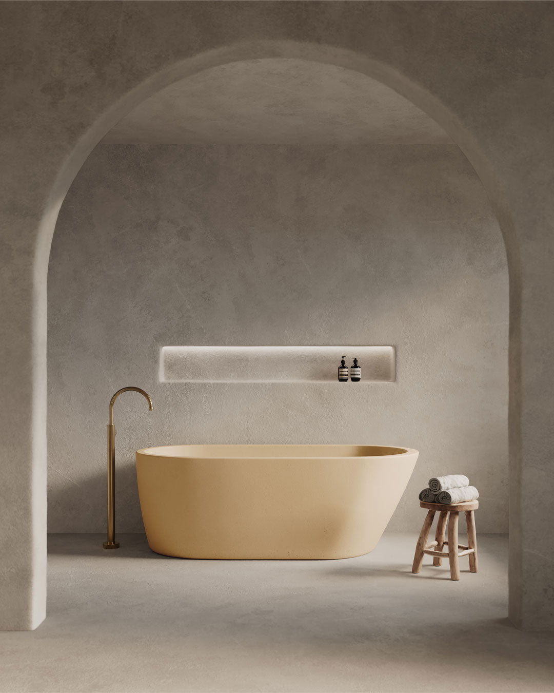 Kindly Note: The images provided are for illustrative purposes and may not accurately capture the product's true colour. For a precise colour match, we recommend referencing our sample kits or viewing our products in person at an authorised reseller. Our concrete mix yields a predominantly smooth finish. While pinholes can occasionally appear, the overall appearance and patina of your bath will remain largely uniform.