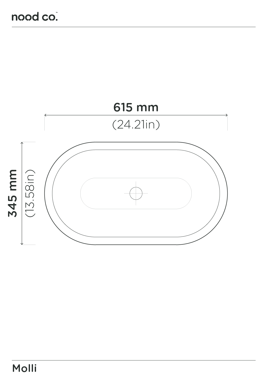 Waste Rqd 32mm (1.25in) only. Non-Overflow Waste Only (Not Supplied by Nood Co)